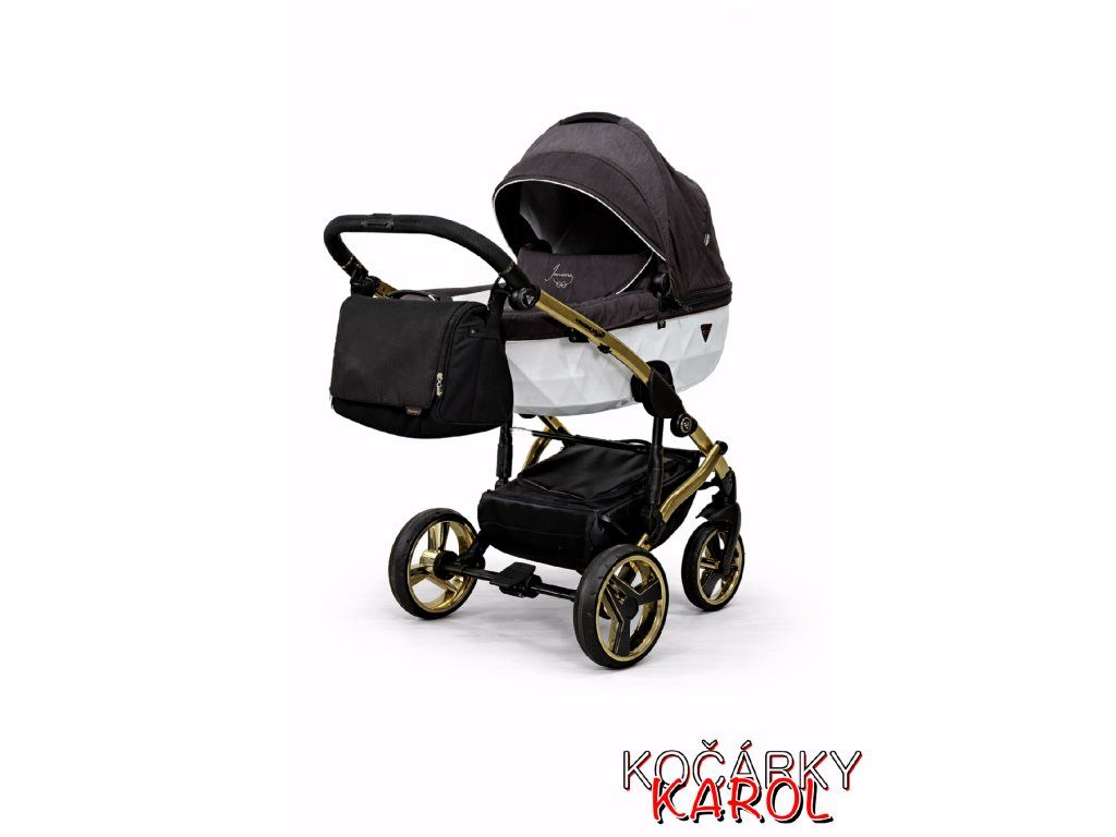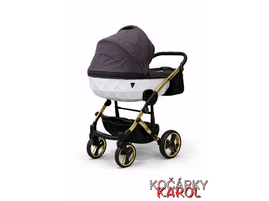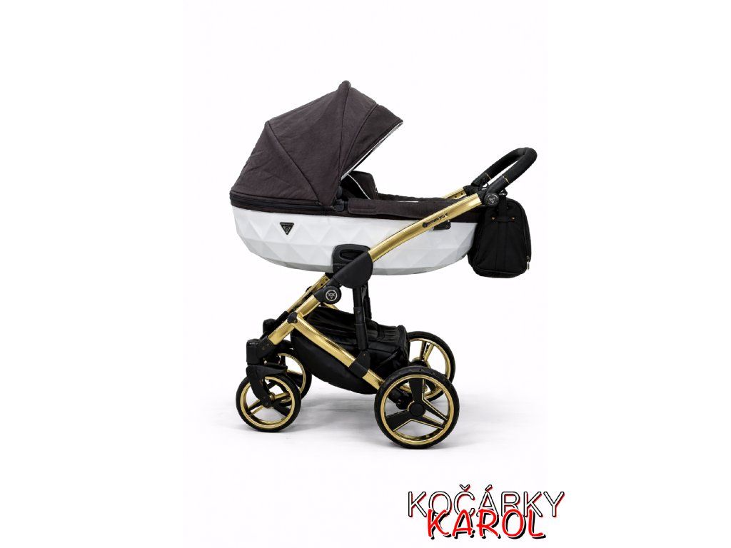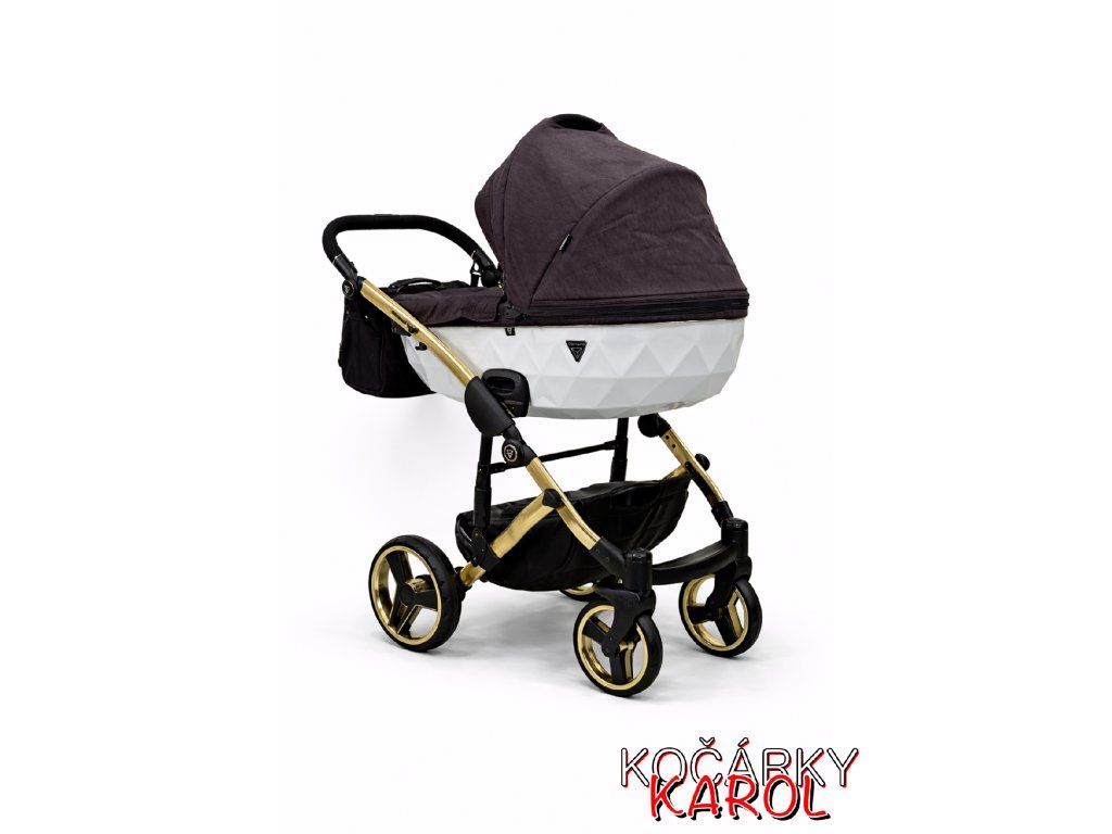 Junama Diamond S-Line v elegantní bílé variantě White je luxusní kombinovaný kočárek s moderním designem a velmi odolnou konstrukcí. Nabízí prostornou hlubokou korbu, komfortní sportovní sedačku a výborné jízdní vlastnosti díky odpružení a systému Antishock.