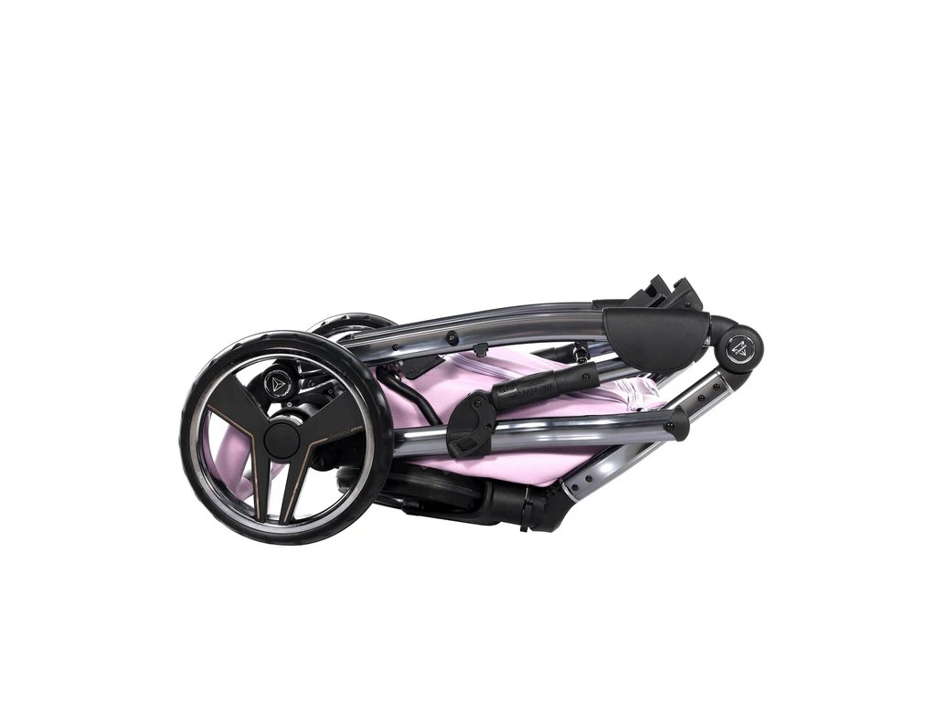 Konstrukce kočárku je vyrobena z odlehčeného hliníkového materiálu. Na konstrukci je přídavný tlumič nárazů umístěný v rámové konstrukci zajišťuje eliminaci vibrací a nerovnosti terénu. Pohodlí dítěte zajišťuje odpružení podvozku s nastavitelnou tuhostí až na 3 polohy do 27 kg. Velká polyuretanová kola (směs polyuretanu a gumy) s odpružením absorbuje otřesy a poskytují hladkou jízdu, zatímco otočné přední kolo usnadňuje manévrování i na úzkých chodnících. Pro bezpečnost slouží bezúdržbová centrální kolébková brzda. Rukojeť je polohovatelná potažena ecokůží.