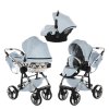 Set obsahuje: podvozek + hlubokou korbu + sportovní sedačku s nánožníkem + přebalovací tašku + pláštěnku + moskytiéru + kšíry + přebalovací podložku + držák nápojů