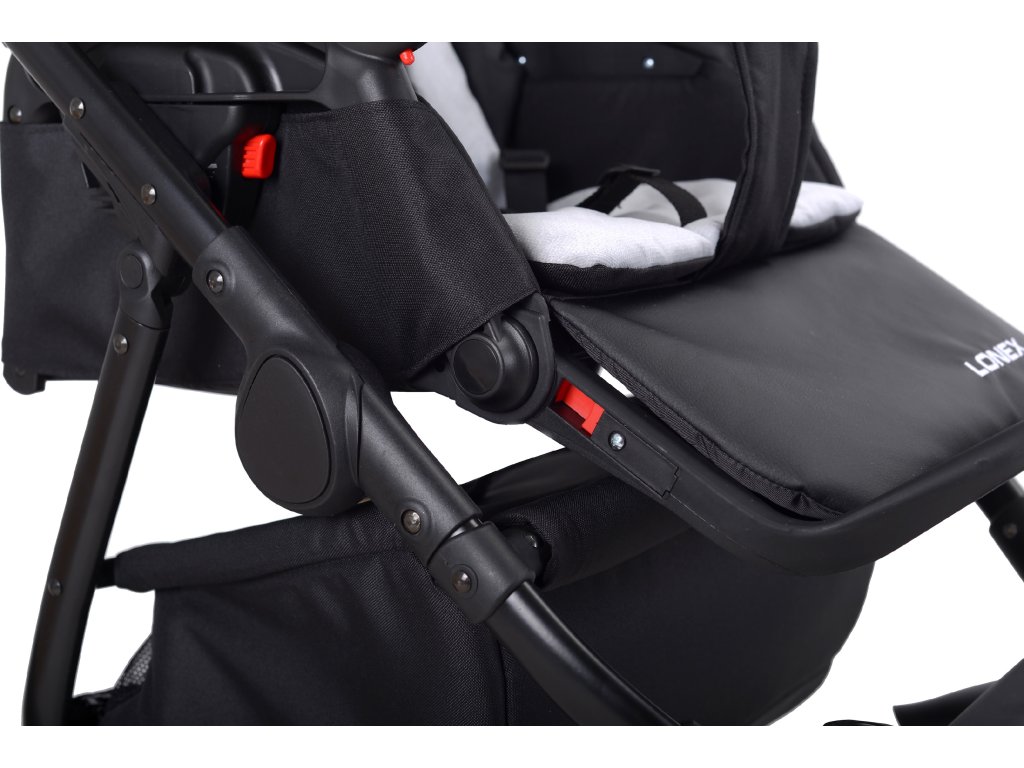 Kočárek Lonex Sport je ideální pro rodiče, kteří chtějí kombinovat styl a praktičnost. Jeho moderní design a lehká konstrukce zajišťují pohodlnou jízdu pro dítě i pro rodiče. Kočárek má možnost polohování opěrek do tří poloh, což umožní přizpůsobení sedačky dle potřeb dítěte a nabízí možnost spánkové polohy. Kočárek je vybaven ochrannou stříškou proti slunci a integrovaným dětským sedátkem s pětibodovým bezpečnostním pásem. Dále ke kočárku dostanete držák na pití, pláštěnku i síťku proti hmyzu. Kočárek je tzv. v plné palbě. Kočárek Lonex Sport je ideální volbou pro aktivní rodiny, které chtějí kvalitní, stylový a praktický kočárek.
