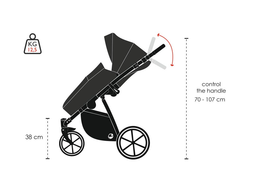 - výška kočárku po rukojeť: 70-107 cm (dle nastavení rukojeti)