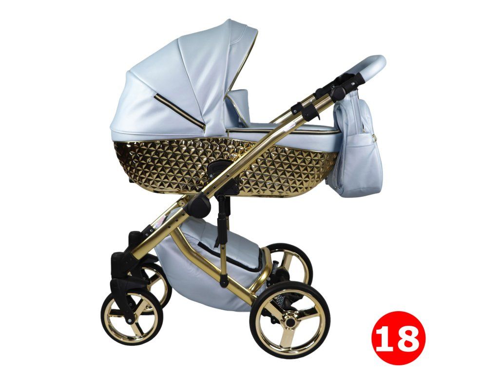 Sojan Happy Exclusive 18 v světle modré barvě je kočárek, který nejen okouzlí svým vzhledem, ale nabízí i pohodlí a komfort pro vaše dítě. Tento kočárek vyniká svým stylovým designem a praktičností, což ho činí ideálním pro každodenní procházky, nákupy i delší výlety.