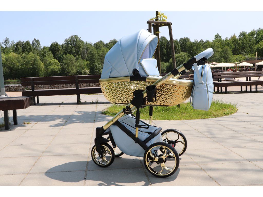 S kočárkem Sojan Ritmo 13 v barvách světle modrá a zlatá přichází stylová kombinace jemné elegance a moderního luxusu. Tento kočárek je navržen pro rodiče, kteří chtějí propojit pohodlí s atraktivním designem, a to vše za dostupnou cenu.