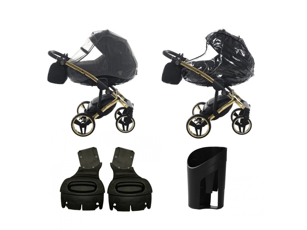 Rozšířený set Výbava + ke kočárku přináší ještě více praktičnosti a flexibility. Obsahuje vše z klasické výbavy (držák na nápoj, pláštěnku a síťku proti hmyzu) a navíc adaptéry na autosedačku, díky kterým jednoduše vytvoříte plnohodnotný cestovní systém.